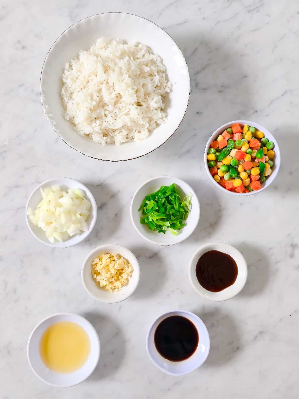 - Ingredients for Easy Frozen Vegetable Fried Rice